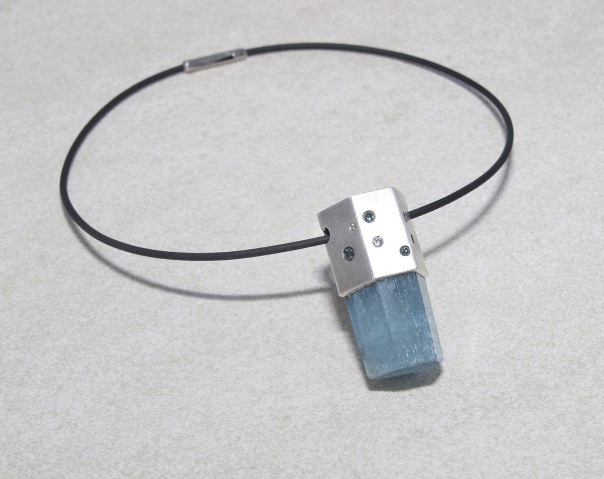 Anhänger mt Aquamarinkristall und Brillanten Menge