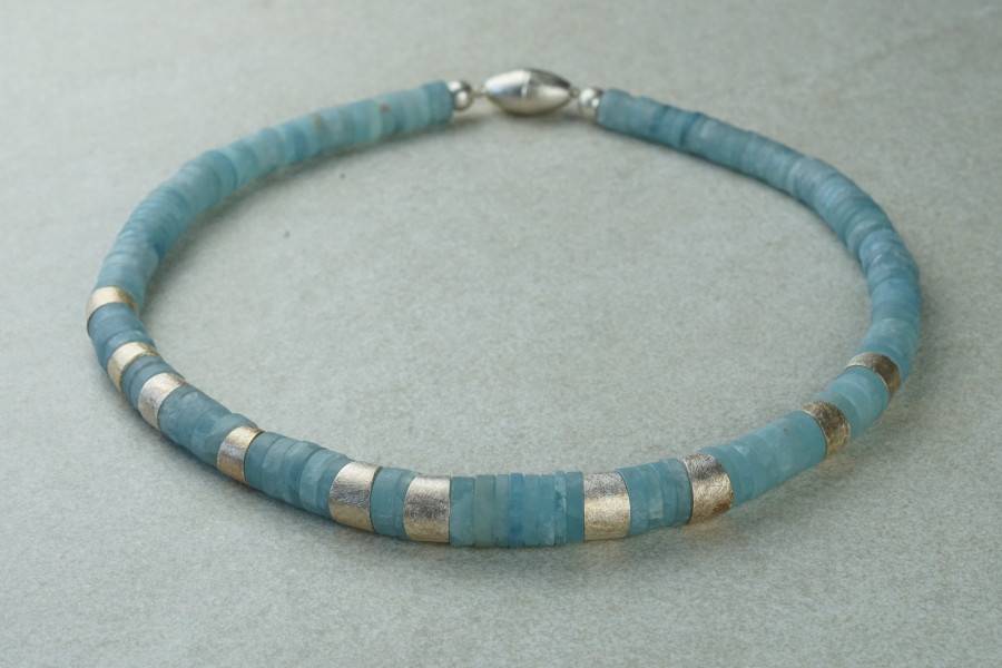 Aquamarinkette mit Silberschliesse und Silberelementen aus 925er Silber