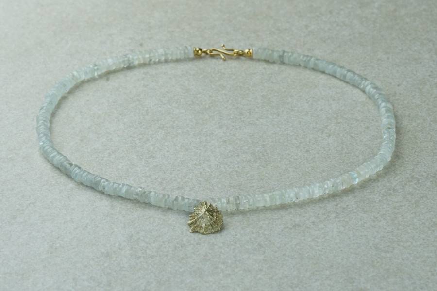 Aquamarinkette mit Goldschliesse und Muschelanhänger aus 585er Gold