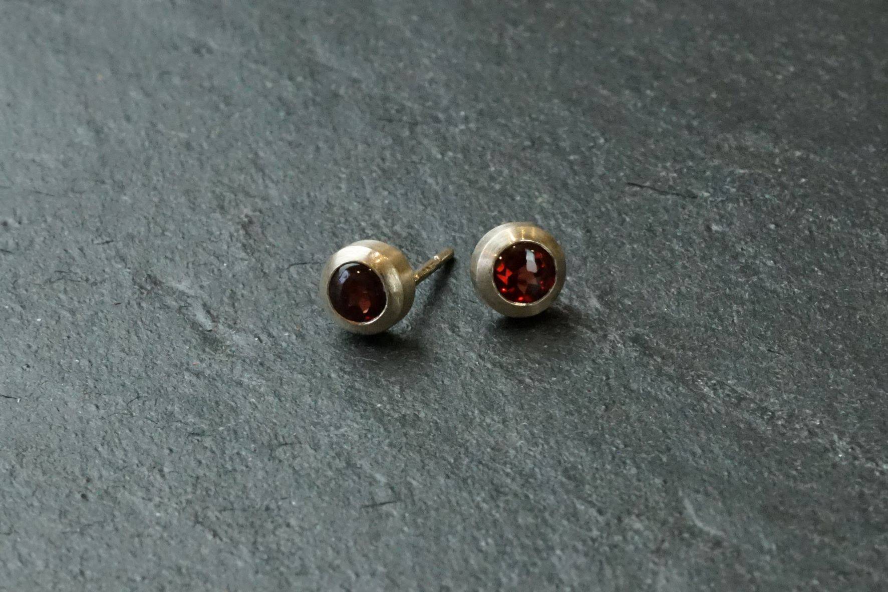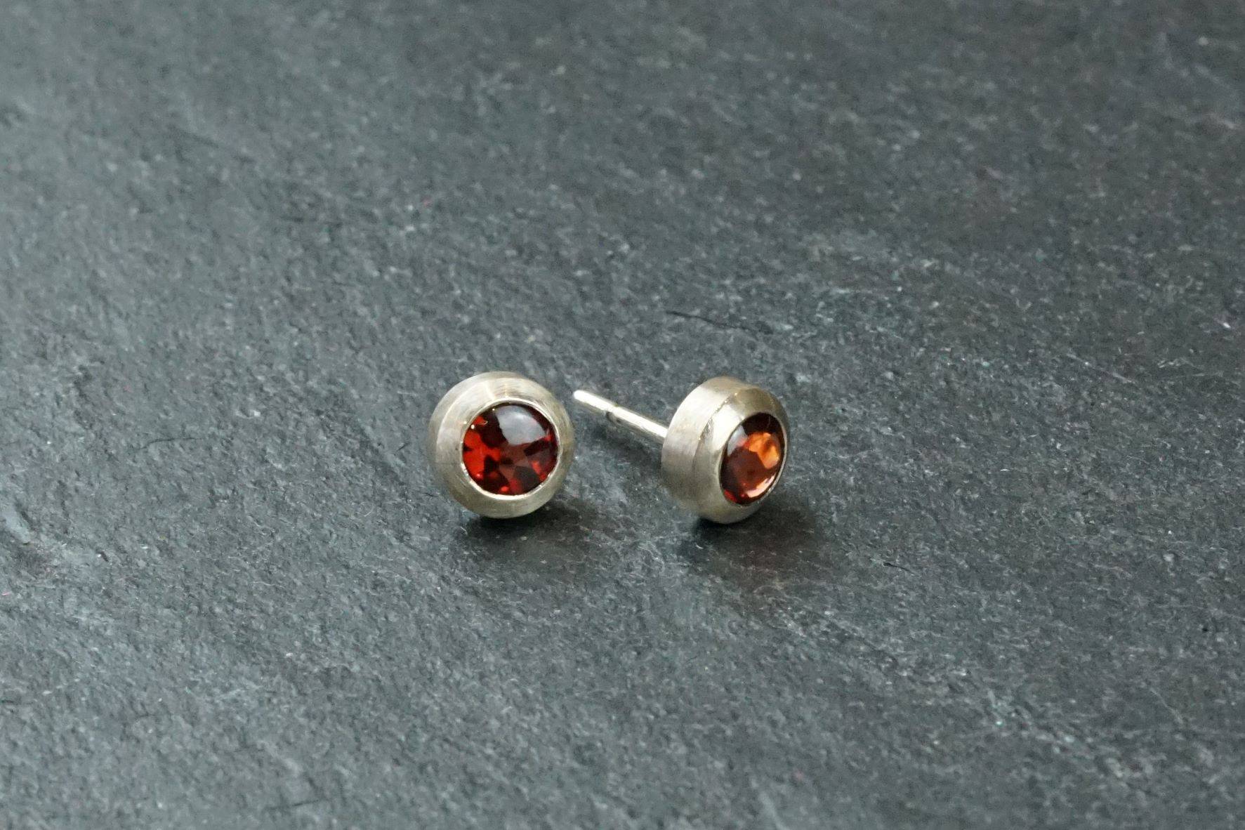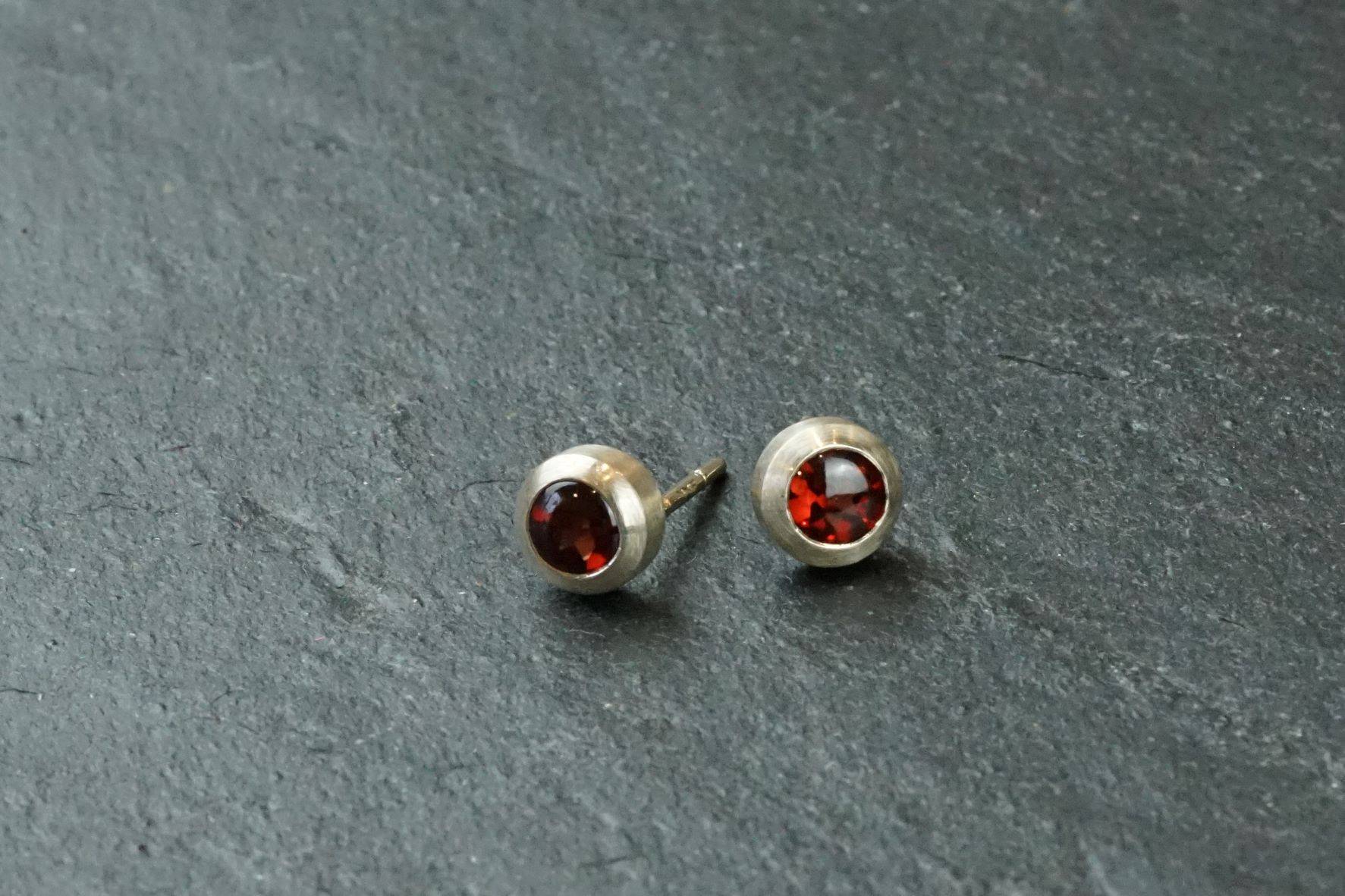 Silber Ohrringe-Ohrstecker, 925/000, mit Granat