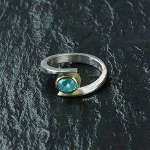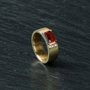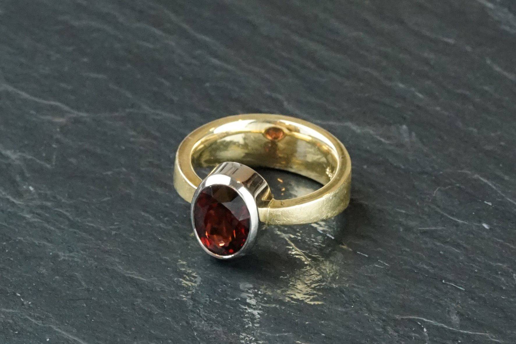 Gelbgold /Weißgold Ring, 585/000, mit Granat, Ringgröße 56
