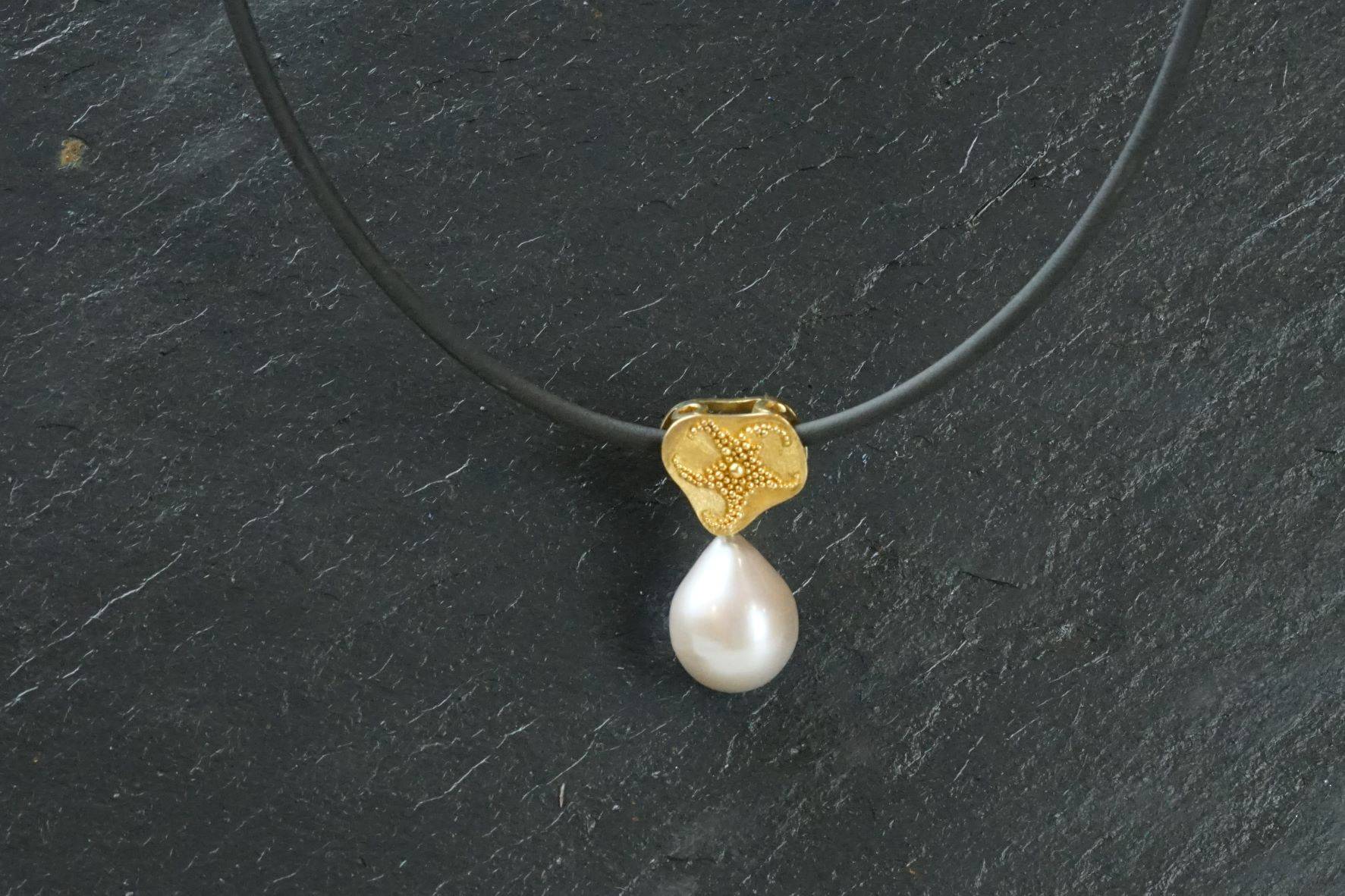 900/000 und 750/000 Gelbgold mit Sößwasserperle
