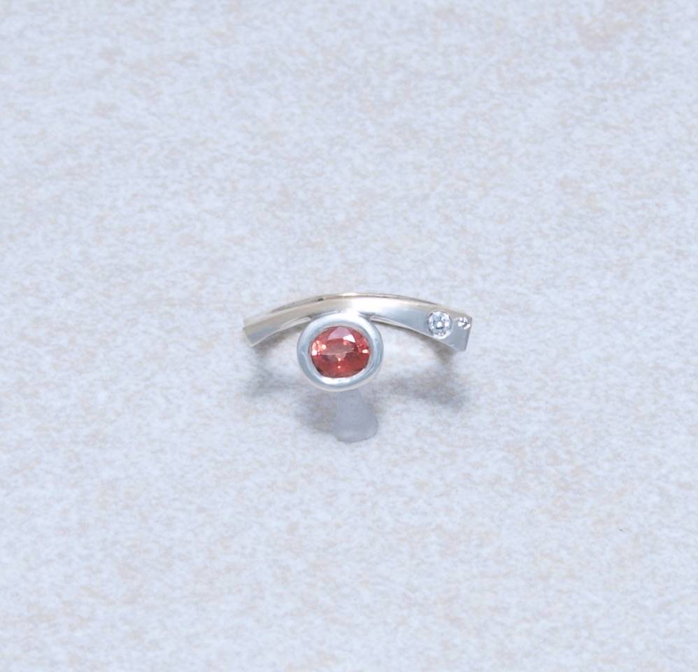 Ring mit rotem Saphir und 2 Brillanten Menge