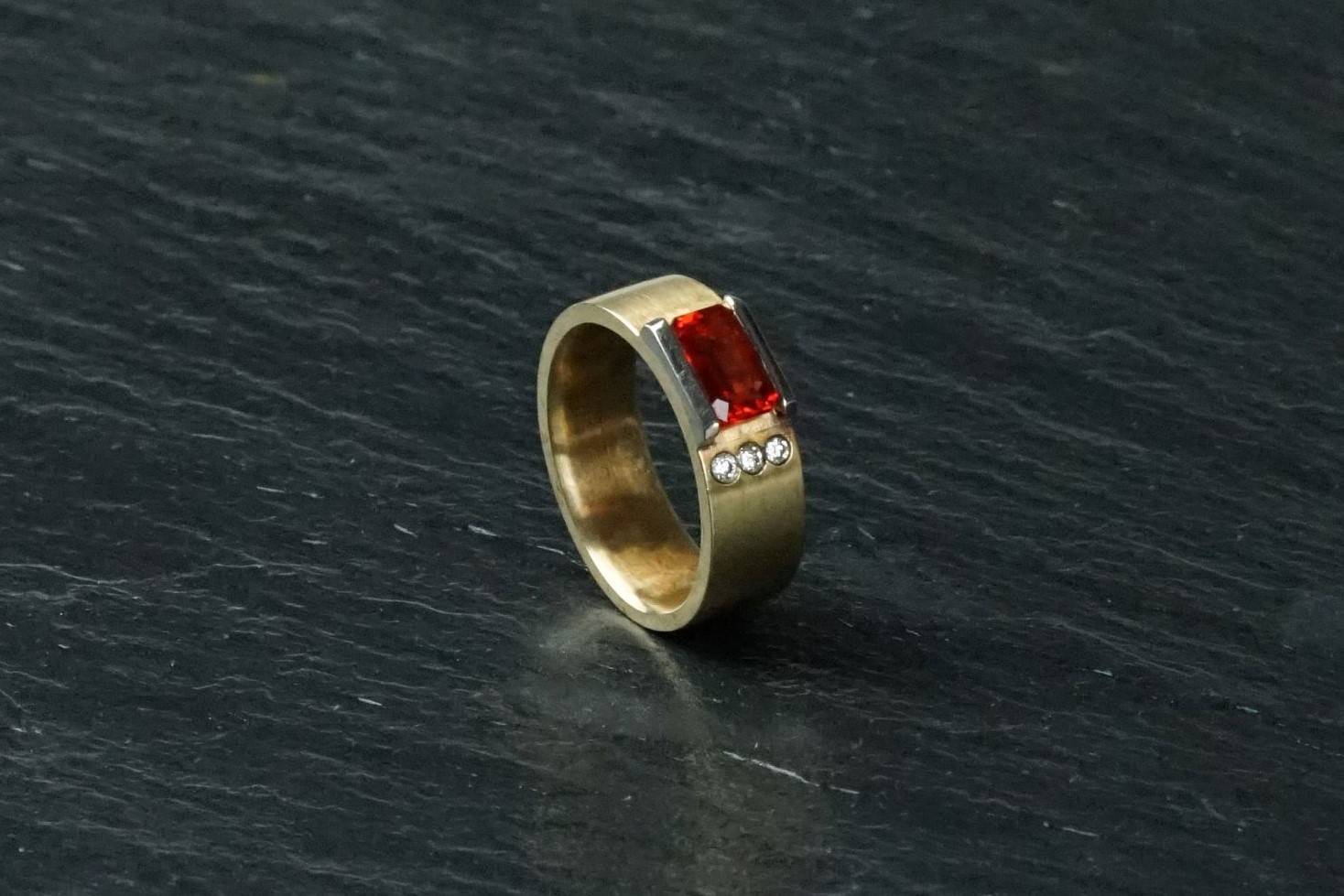 Gelbgold/Weißgold Ring, 585/000 mit Rot Saphir und Brillanten, Ringgröße 50