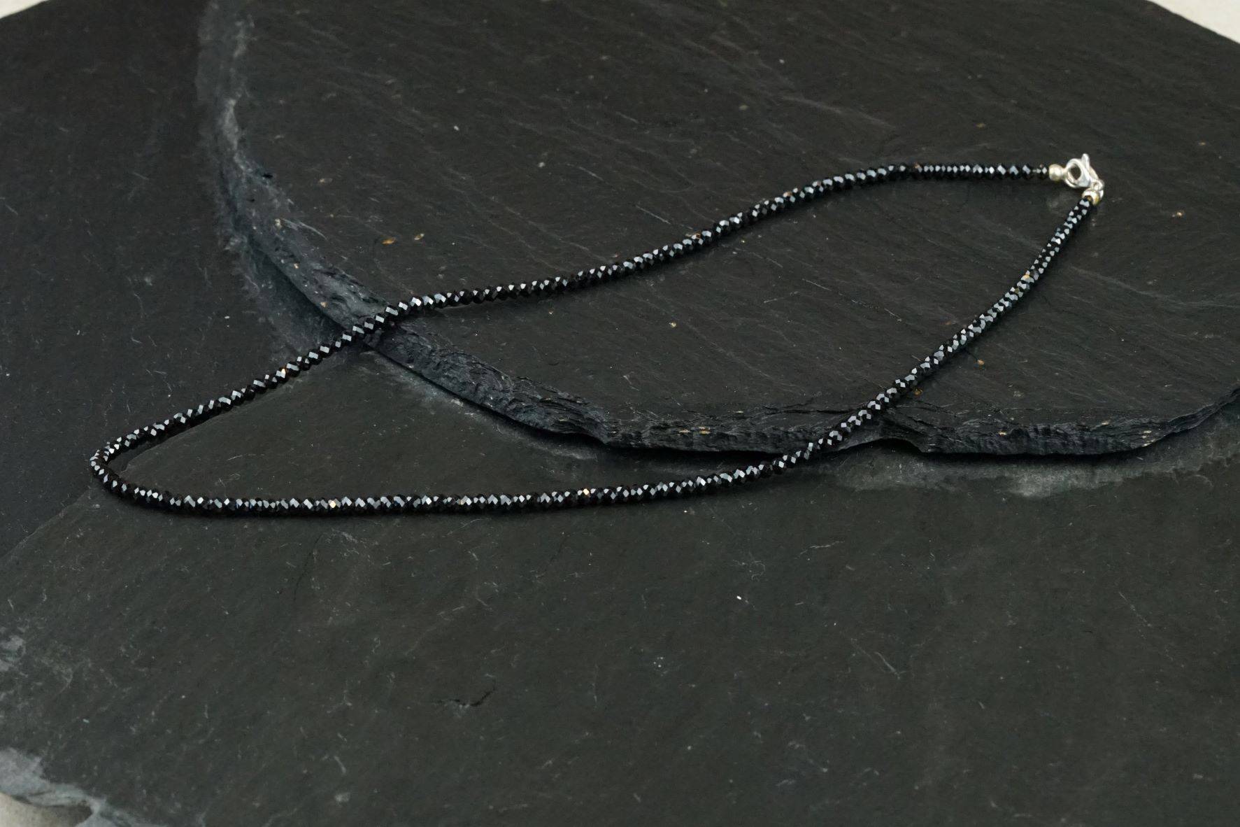 Schwarzer Spinell Kette, Silber Schloss, 925/000